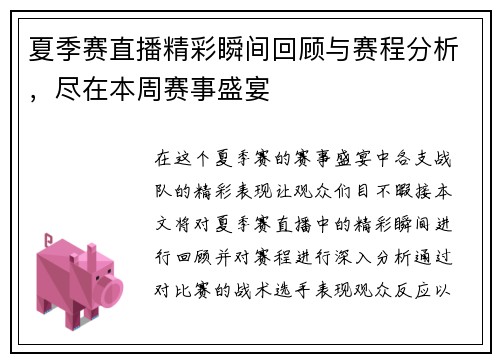 在陕西一套的直播节目中,观众们共同见证了一场精彩的体育盛事。赛事的紧张氛围、选手们的精彩表现以及观众的热情反应,构成了一幅生动的画面。本文将从赛事的精彩回顾、观众的热情参与、直播节目的专业性以及对体育文化的推动四个方面进行详细阐述,展现陕西一套直播节目所带来的独特体验和深远影响。 1、赛事精彩回顾 本次体育盛事汇聚了众多优秀的运动员,他们在赛场上展现了高超的技艺和顽强的拼搏精神。每一场比赛都充满...