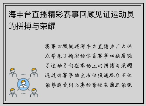 赛事概述与精彩回顾 江津直播精彩赛事回顾,展现了运动员们在赛场上的拼搏与荣耀。通过对各项赛事的深入分析,我们不仅能够感受到运动员们的努力与坚持,还能领略到他们在比赛中所展现出的非凡技艺与团队精神。本文将从赛事的组织与安排、运动员的表现与成就、观众的热情与支持、以及赛事的影响与展望四个方面进行详细阐述,力求全面呈现江津直播赛事的精彩瞬间与深远意义。 赛事的组织与安排 江津直播赛事的成功离不开精心的...